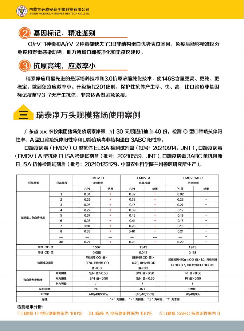 口蹄疫O型、A型二价3B蛋白表位缺失灭活疫苗(O/rV-1株+A/rV-2株)